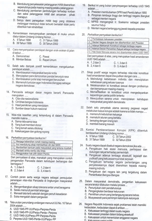 Soal USBN PPKN SMP/MTS Sesuai KTSP/Kurikulum 2006 tahun 2017 2018 2019 2020