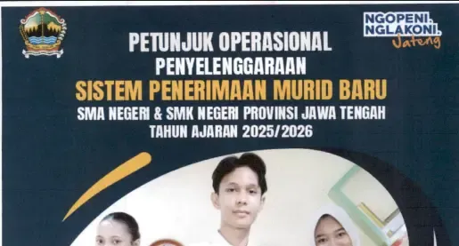 Jadwal dan Juknis SPMB SMA SMK Provinsi Jawa Tengah Tahun 2025/2026 ditetapkan melalui Keputusan Kepala Dinas Pendldikan Dan Kebudayaan Provinsi Jawa Tengah Nomor :400.3/06498 Tentang Petunjuk Operasional Penyelenggaraan Sistem Penerimaan Murid Baru Pada Sekolah Menengah Atas (SMA) Negeri Dan Sekolah Menengah Kejuruan (SMK) Negeri Provins!Jawa Tengah Tahun Ajaran 2025/2026.